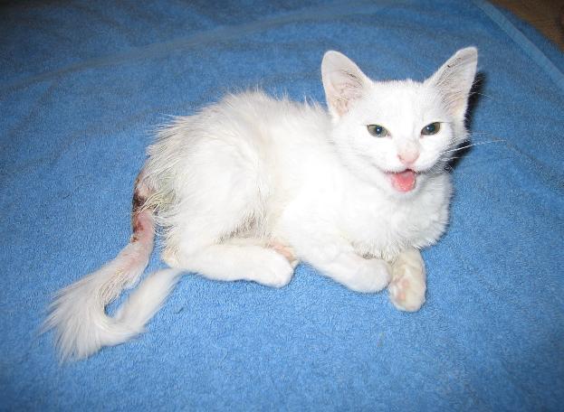 The new kitten, Isabella. Yes, she talks alot! Since this picture was taken, she has been back to the vet who says her tail is looking great.